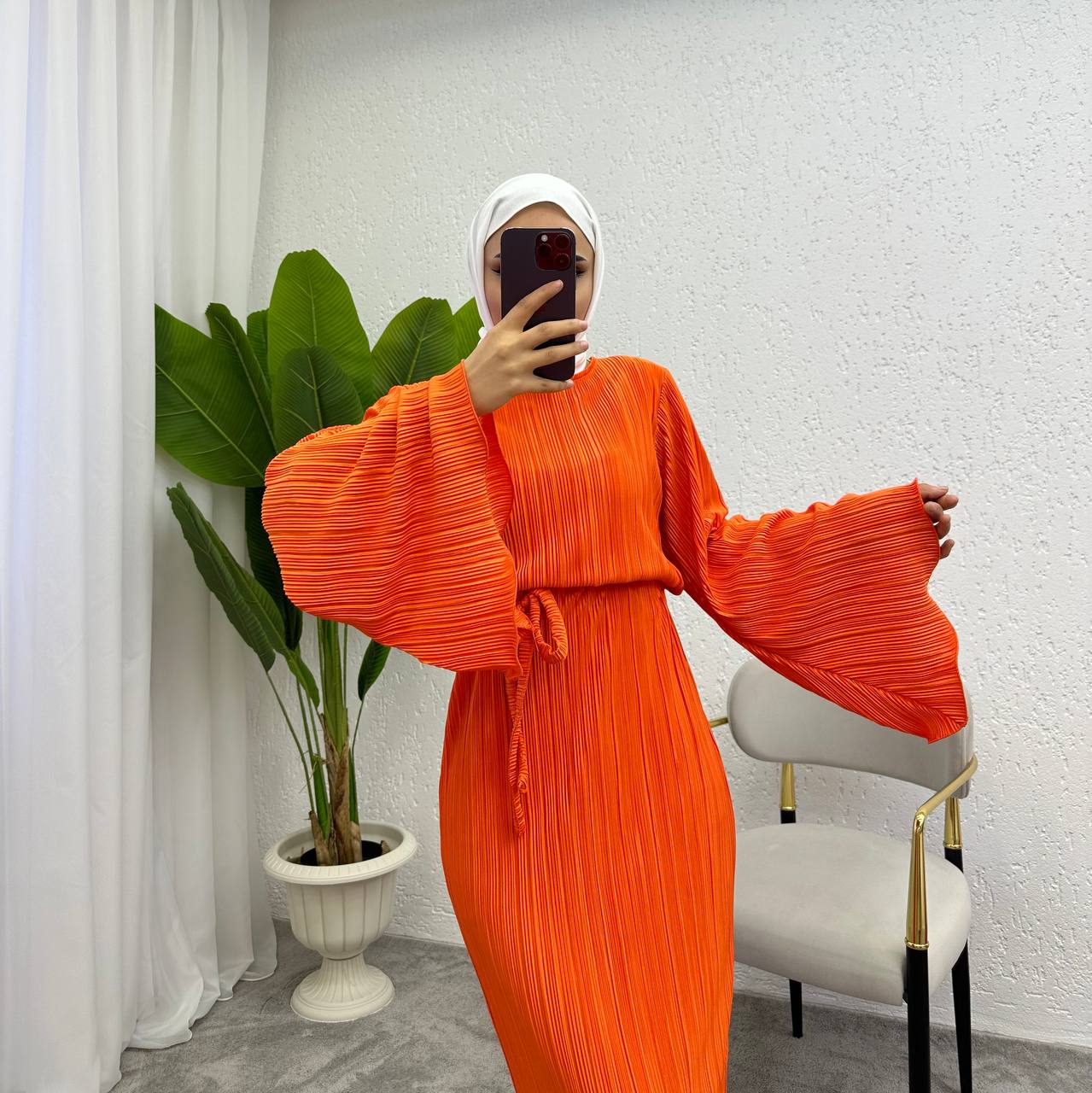 Experience the epitome of summer and holiday aesthetics with our BISAN dress in vibrant orange sunset blush. This beautifully pleated dress is a must-have for beach days, parties, figures. Own every moment in style with this versatile piece.